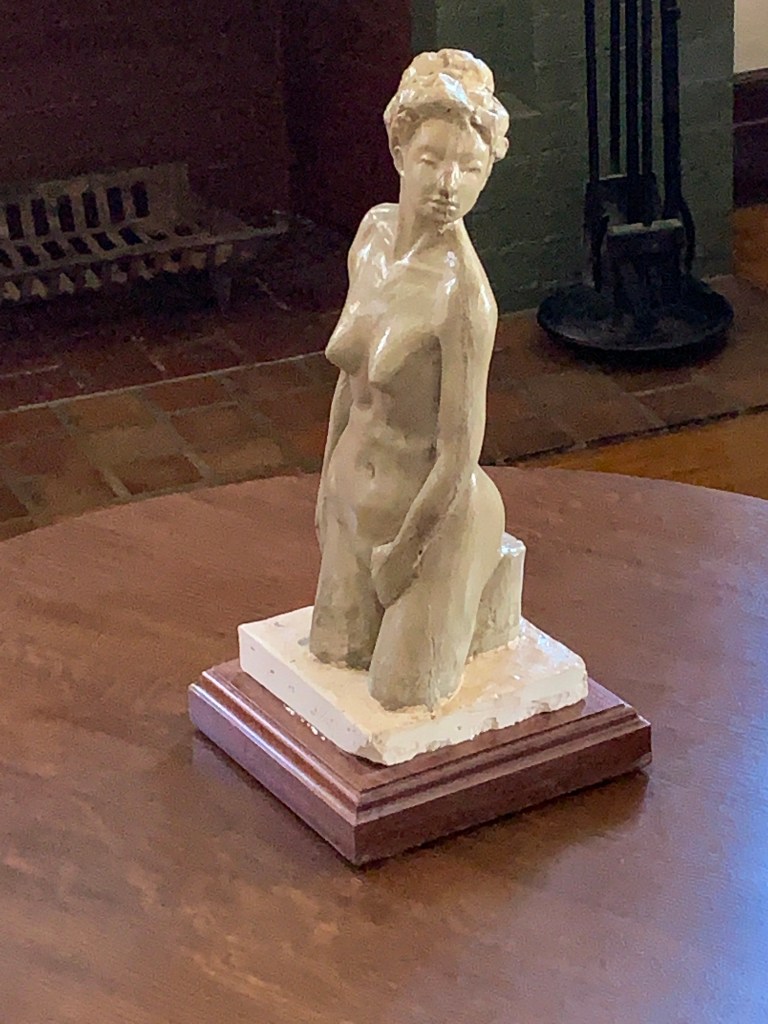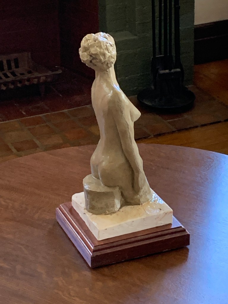 Version one of the model for the figure carving wasn’t quite what was needed. I’d made a mold before deciding to rework it but I’d never poured it. The clay popped out of the mold almost unharmed so it was easy to rework the aspects I didn’t like. I liked the placidity of her posture but the self-contained quality seemed looked to be to static if it were larger. I wanted some reference to the world outside the stone. The pose was after a classical Roman piece and it just wasn’t right in 2020.