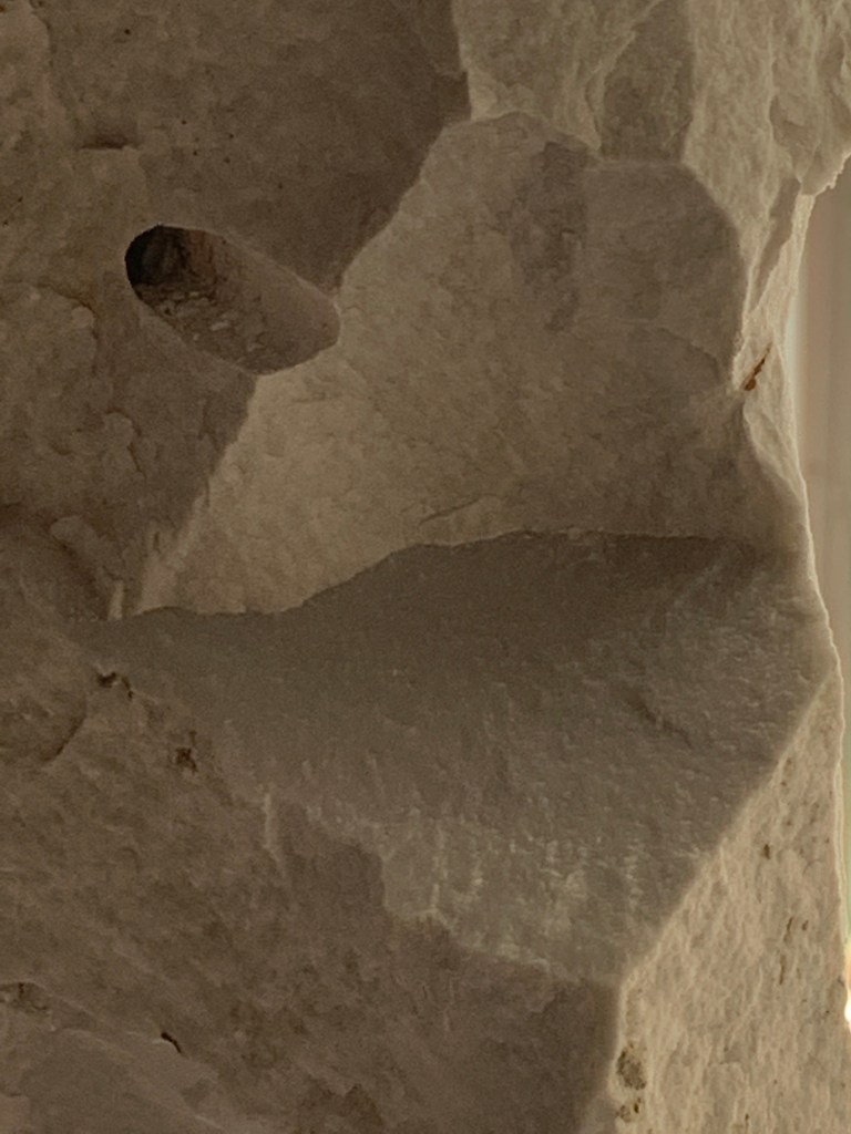 I threw in the third picture because I find the illusion with the stone columns on the upper 1/3 of the picture even more convincing. The “columns” are actually drilled holes exposed by a break. Even knowing that and trying to dispel the illusion I can’t see them as holes. I’m curious if everyone sees them that way.
